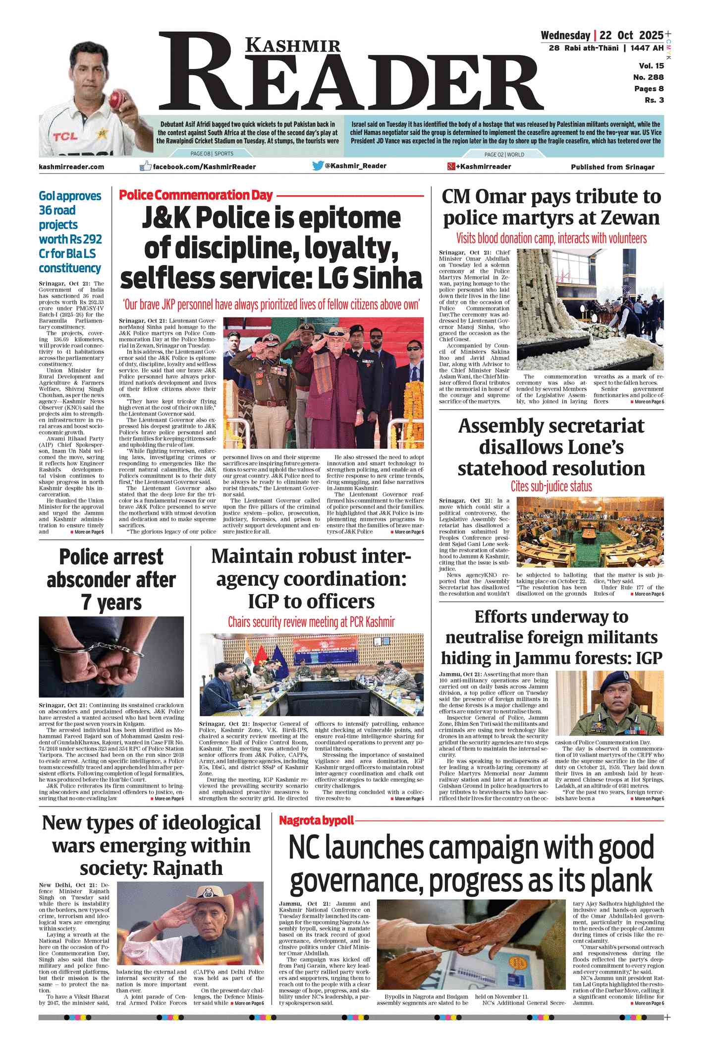 Kashmir Reader Srinagar (J&K) | Srinagar No.1 News ePaper Site. Get latest News on Kashmir Reader Srinagar (J&K)