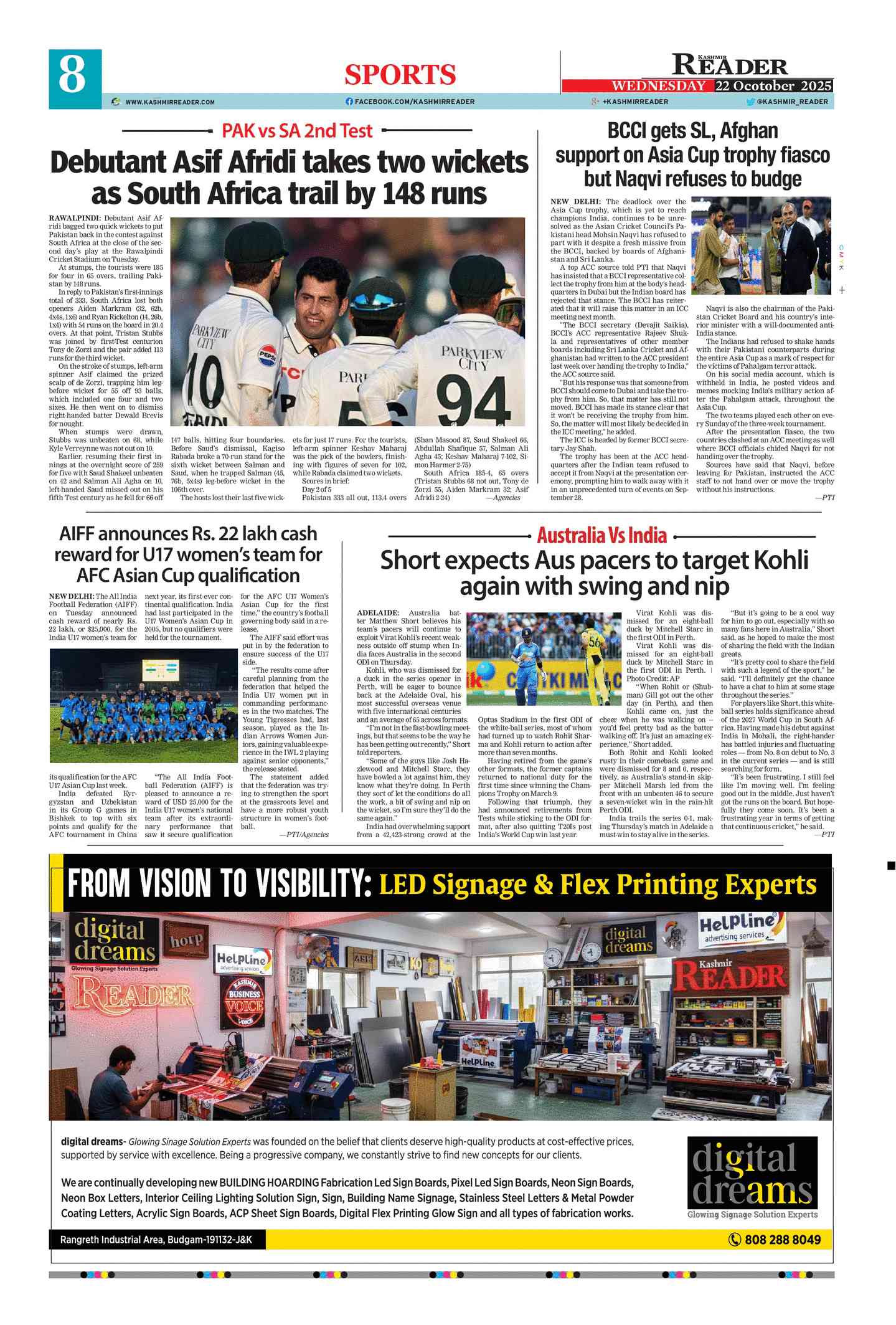 Wednesday, 22 October, 2025