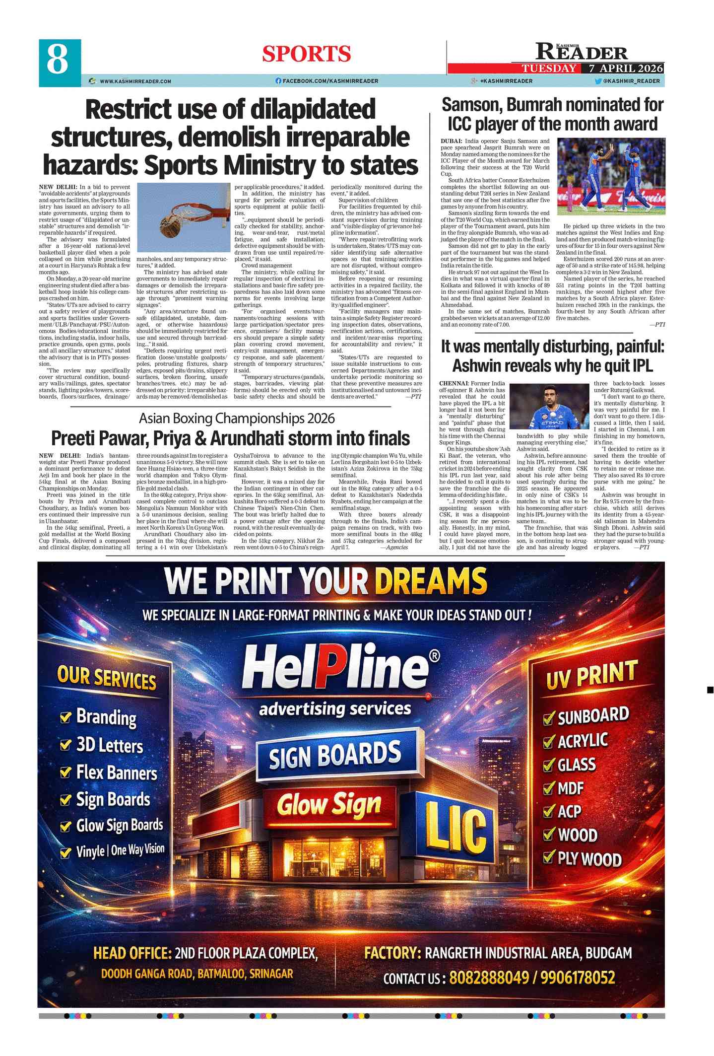 Kashmir Reader Srinagar (J&K) | Srinagar No.1 News ePaper Site. Get latest News on Kashmir Reader Srinagar (J&K)